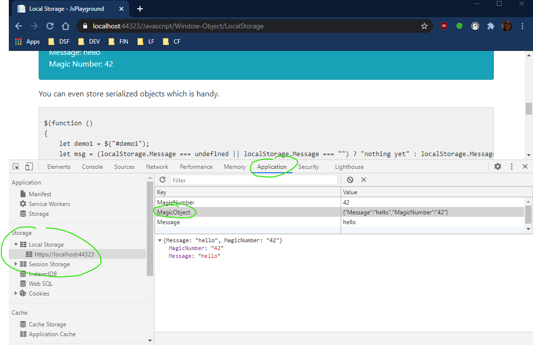localStorage.MagicObject = JSON.stringify({ Message: msg, MagicNumber: magicNumber });