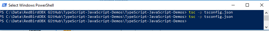 and to have it build a package/task (such as tsconfig.json), type tsc -p tsconfig.json