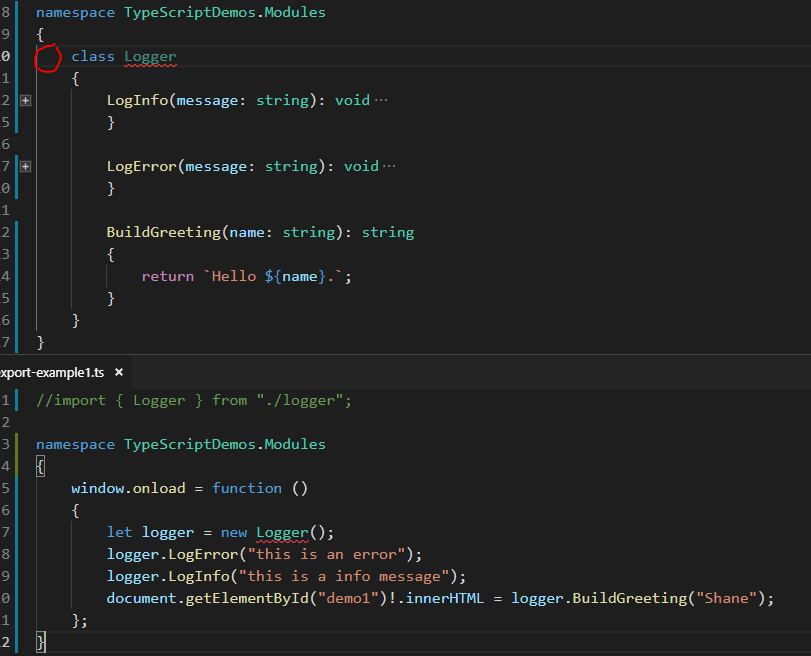 I was able to overcome this by compiling all the related files into a single js file and just referencing that file in my page. I defined this in my tsconfig.json file.